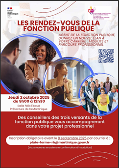 Le 2 octobre 2025, le CDG Martinique a participé aux Rendez-vous de la Fonction Publique, à l’invitation de la Préfecture et en partenariat avec la Plateforme interrégionale d’appui interministériel à la gestion des ressources humaines Antilles-Guyane (PFRH Antilles-Guyane).